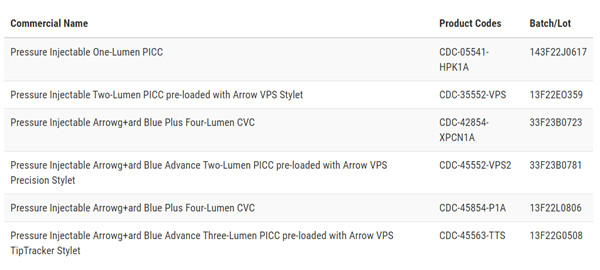2023年8月10日,Teleflex和Arrow International向医疗机构和分销商发出了一封紧急医疗器械召回信,其中包括以下建议行动: