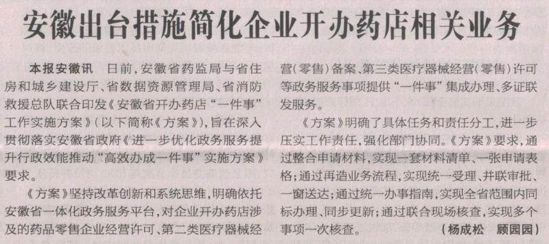 安徽出台措施简化企业开办药店相关业务